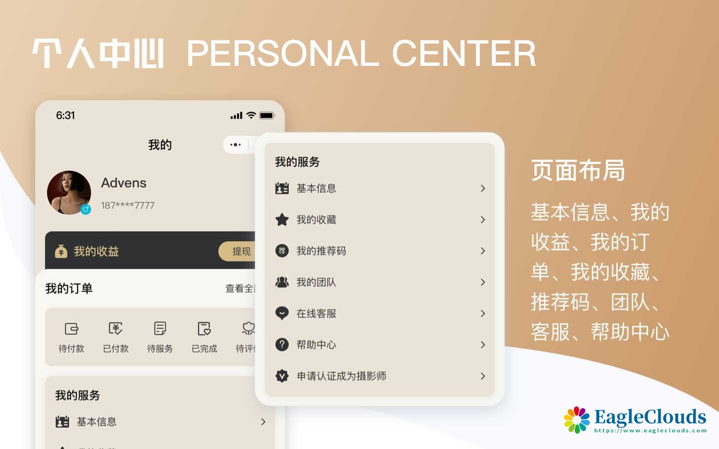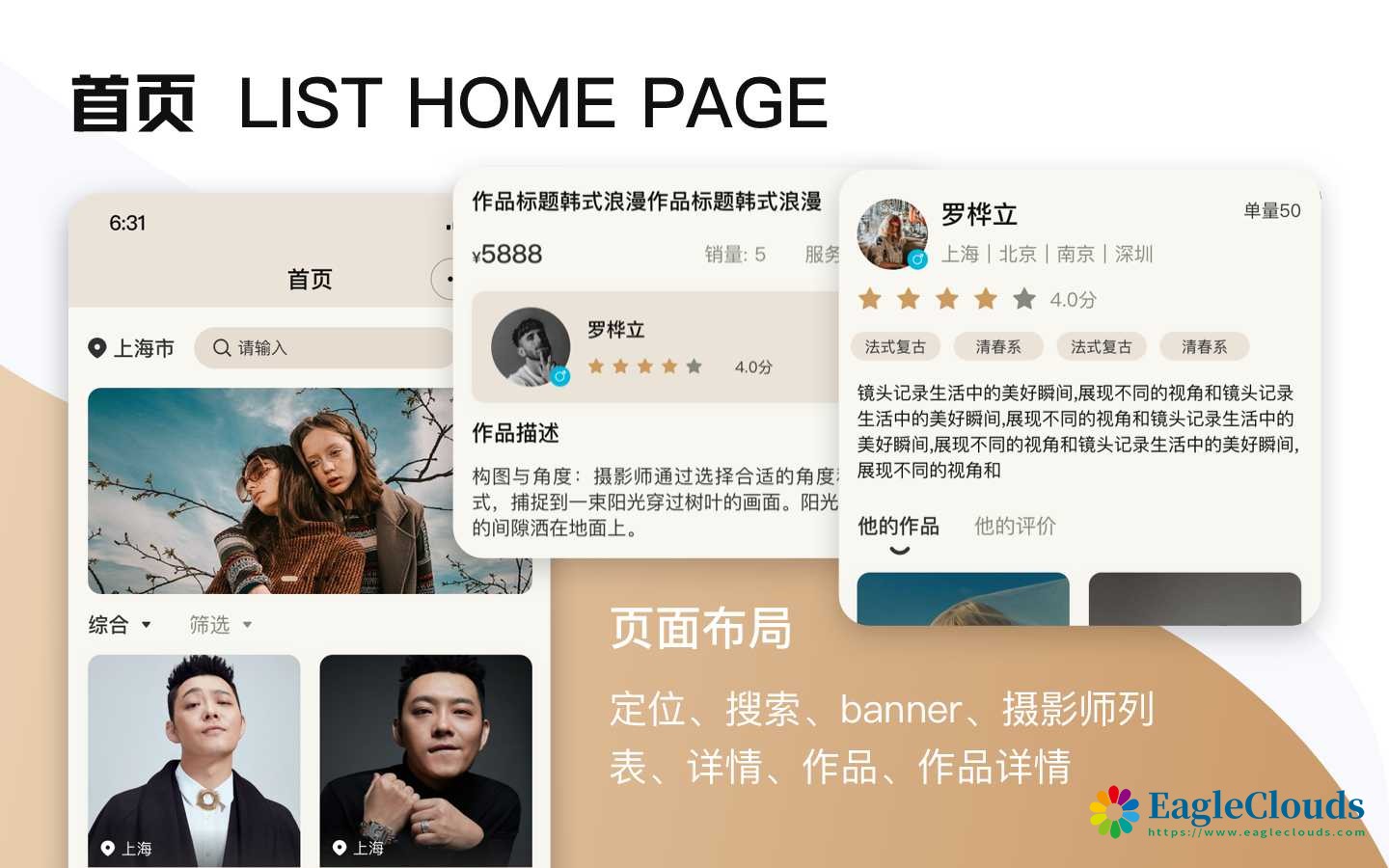 摄影师入驻,用户在线预约,上门服务出拍系统。