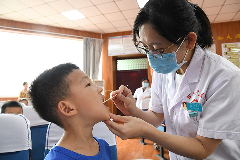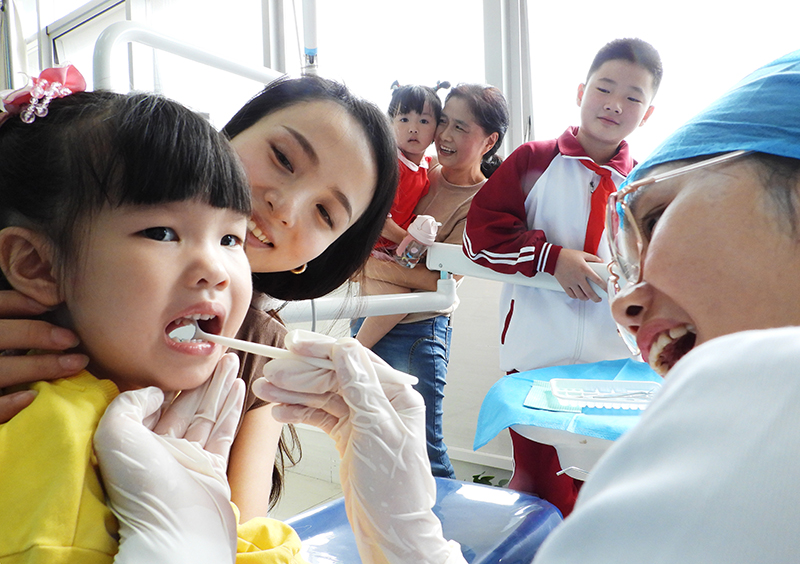 9月19日,河北省邢台市南和区人民医院医务人员在为小朋友检查口腔健康状况。