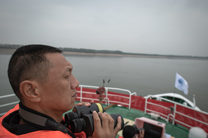 9月24日,长江江豚科学考察船在湖北监利水域行驶。