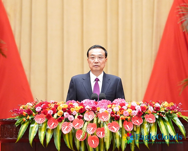 9月30日晚,国务院在北京人民大会堂举行国庆招待会,热烈庆祝中华人民共和国成立73周年。国务院总理李克强致辞。新华社记者 燕雁 摄