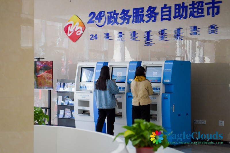 在内蒙古自治区呼和浩特市玉泉区政务服务中心的“24小时政务服务自助超市”,市民在自助办理发票业务(2022年4月2日摄)。新华社记者 李志鹏 摄