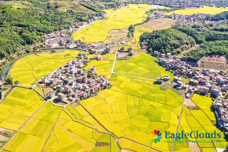 10月10日在湖南省永州市蓝山县土市镇拍摄的稻田(无人机照片)。