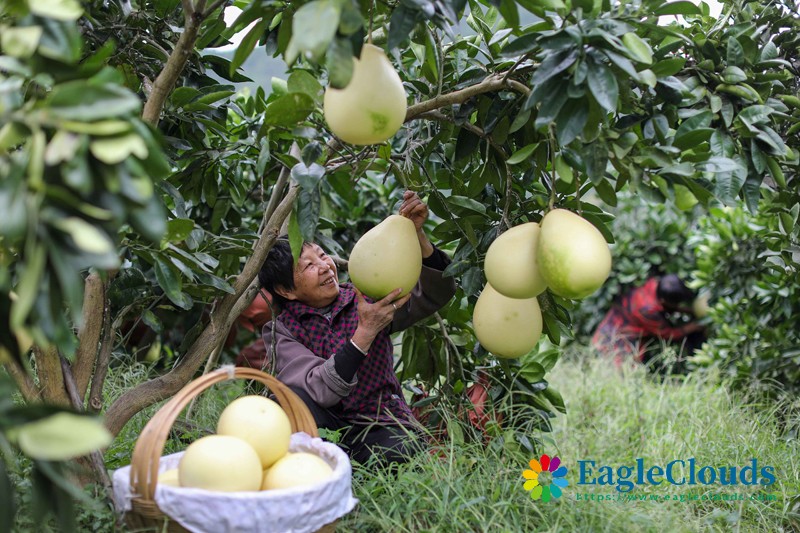10月10日,果农在贵州省遵义市绥阳县风华镇双龙村采收柚子。