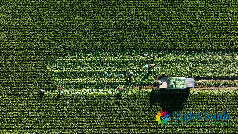 10月10日,河北省玉田县虹桥镇的农民将收获的白菜装车外运(无人机照片)。