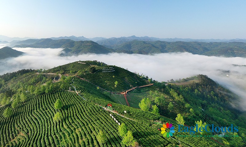 陕西省安康市平利县老县镇蒋家坪茶园(2022年4月5日摄,无人机照片)。新华社记者 陶明 摄
