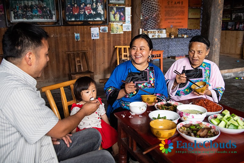 湖南省湘西土家族苗族自治州花垣县双龙镇十八洞村一户村民在吃午餐(2021年7月1日摄)。新华社记者 陈思汗 摄