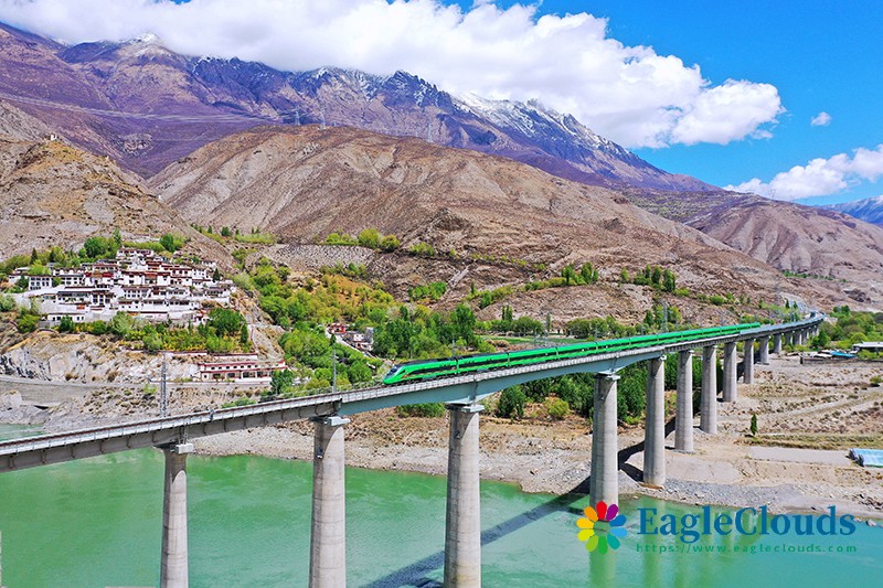 复兴号列车行驶在西藏朗县境内(2022年4月14日摄)。新华社记者 觉果 摄