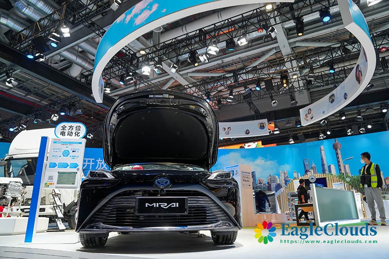 11月5日在第五届进博会汽车展区拍摄的丰田氢燃料电池车。