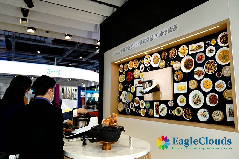 11月5日,参观者在第五届进博会消费品展区参观智能烹饪机。