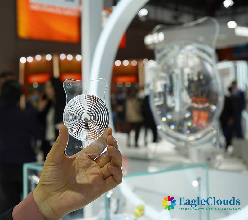 这是11月5日在第五届进博会技术装备展区蔡司展台拍摄的人工晶状体模型。