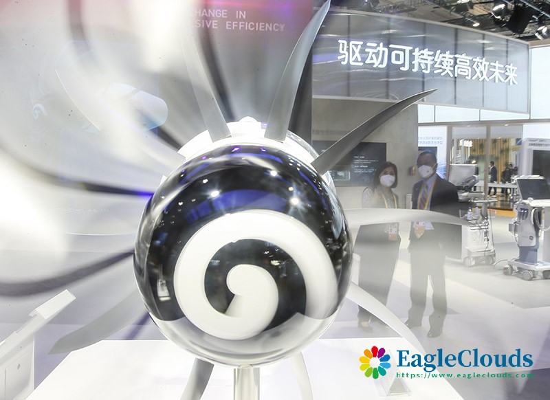11月5日,工作人员在第五届进博会技术装备展区美国通用电气展台向观众介绍产品。
