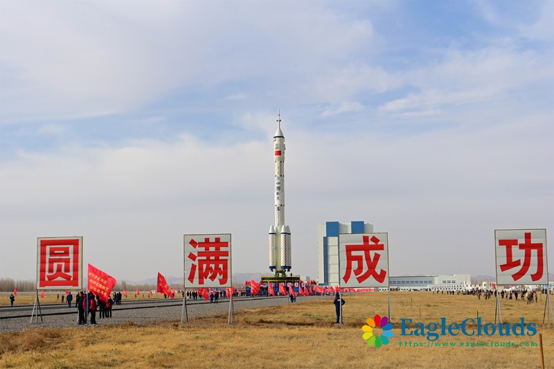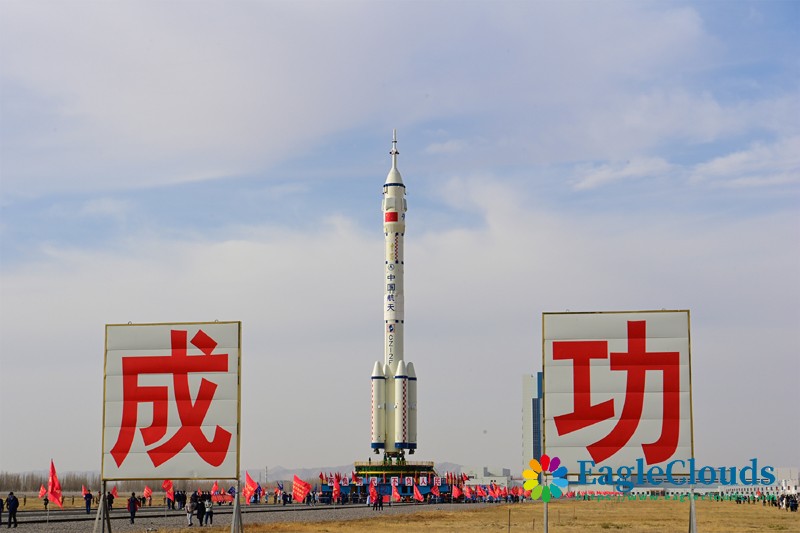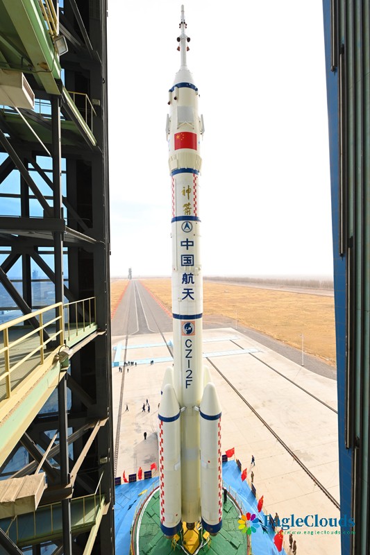 11月21日,神舟十五号载人飞船与长征二号F遥十五运载火箭组合体转运至发射区。新华社发(李昀锡 摄)