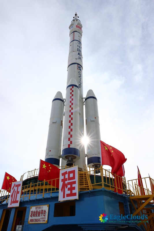 11月21日,神舟十五号载人飞船与长征二号F遥十五运载火箭组合体在转运途中。新华社发(李昀锡 摄)