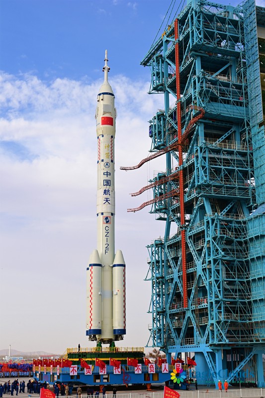 11月21日,神舟十五号载人飞船与长征二号F遥十五运载火箭组合体转运至发射区。新华社发(汪江波 摄)