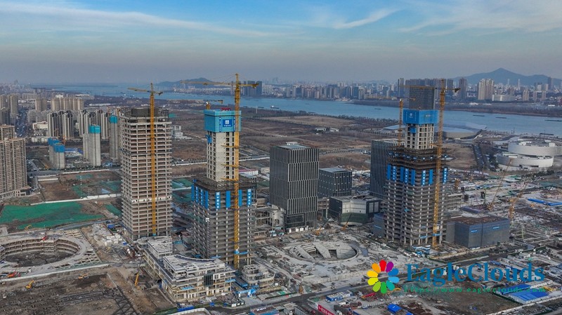 这是1月15日拍摄的江苏省南京市江北新金融中心一期项目施工现场(无人机照片)。
