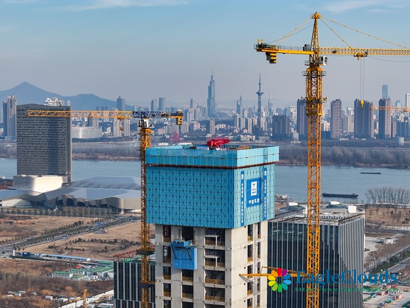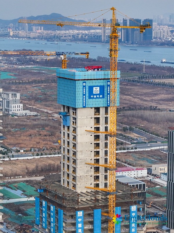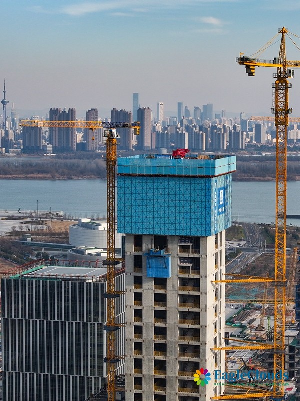 当日,在江苏省南京市江北新金融中心一期项目施工现场,承建方中建三局运用“空中造楼机”进行项目封顶前的最后一次顶升作业,各项施工稳步推进。据介绍,该项目建造采用智能集成“空中造楼机”,提高了高层建筑施工的机械化、智能化及绿色施工水平,让“高空作业”变为“室内施工”,施工效能提升约20%。