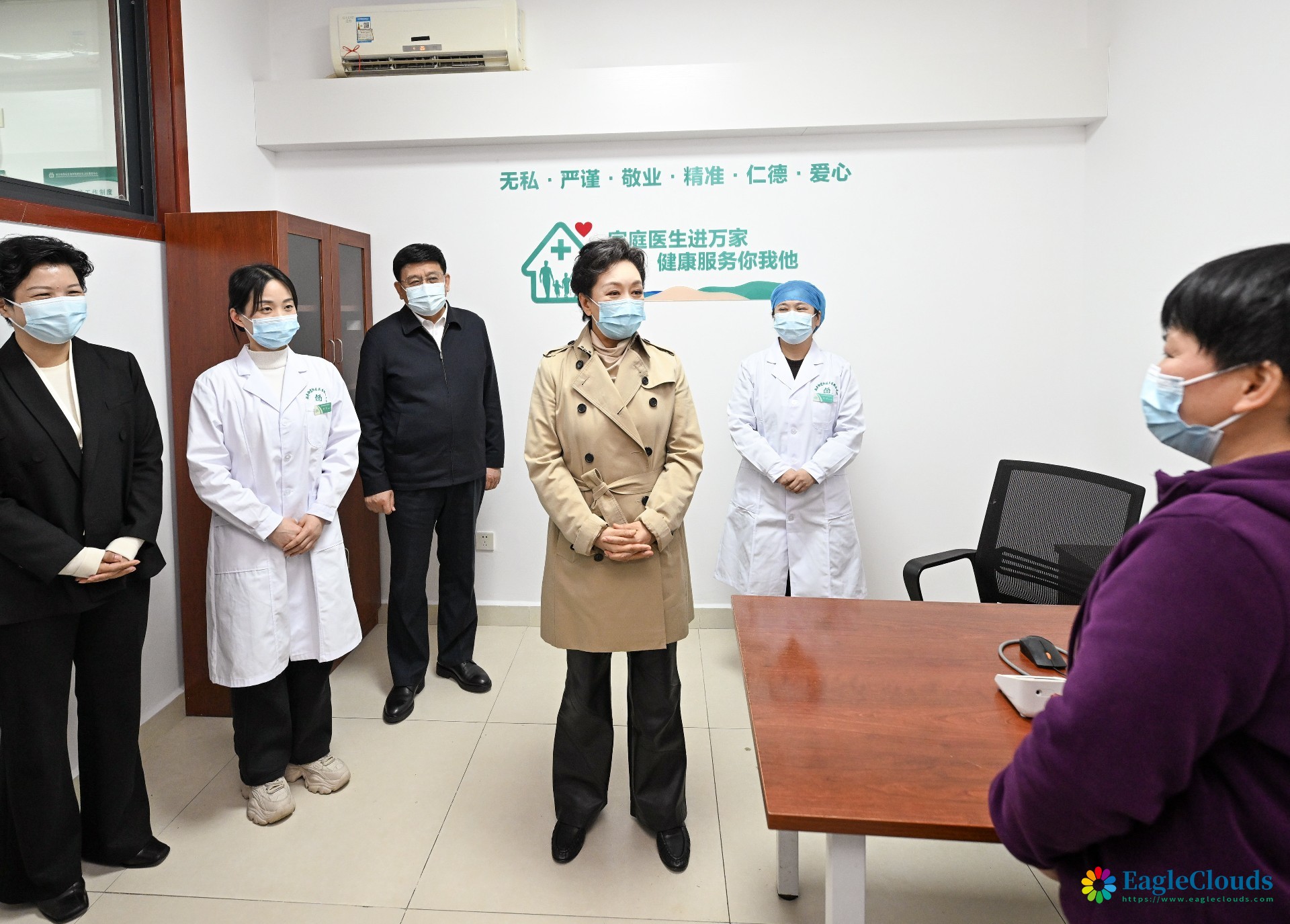 在洞井街道社区卫生服务中心,彭丽媛看望慰问基层医务工作者,了解基层结核病诊治服务管理工作,同前来进行健康咨询的结核病康复患者、等候接种疫苗的儿童和家长亲切交流,细致了解结核病预防、治疗、康复等有关情况,希望大家继续携手努力,共同为终结结核病流行作出贡献。