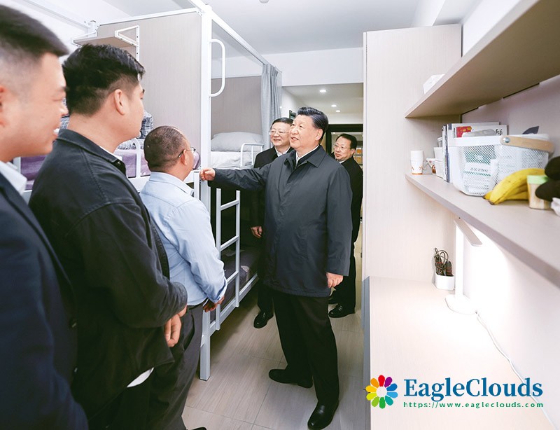 2023年11月28日至12月2日,中共中央总书记、国家主席、中央军委主席习近平在上海考察。这是11月29日下午,习近平在闵行区新时代城市建设者管理者之家考察时,在社区宿舍型出租房源租户的住房,了解在此居住的城市一线工作者的生活状况。新华社记者 鞠鹏/摄