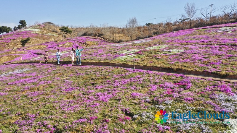 3月31日,游客在贵州省贵阳市乌当区花画小镇景区里赏花游玩(无人机照片)。
