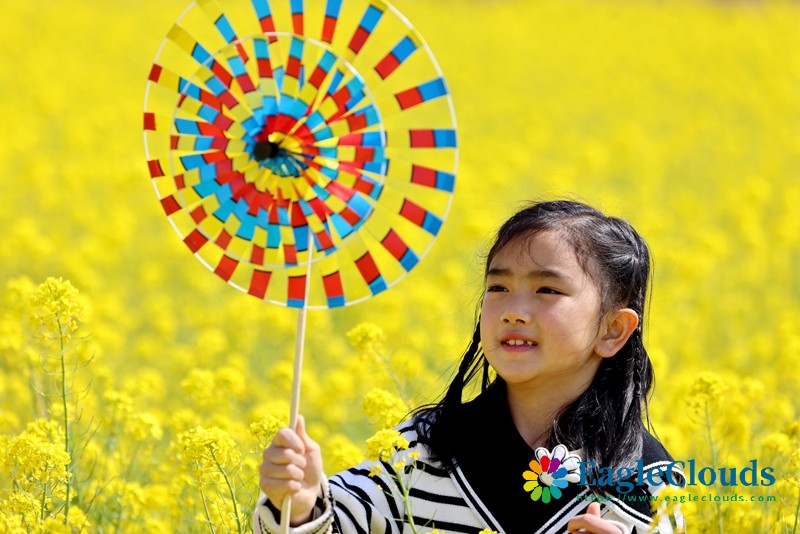 3月31日,在山东省临沂市郯城县郯城街道大高庄村,一名小女孩在油菜花田间游玩。