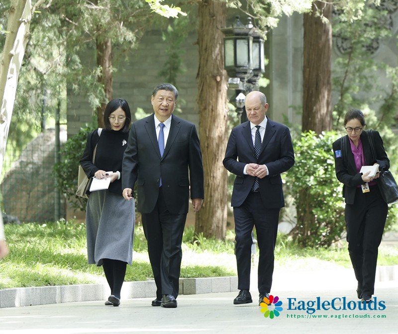 会见后,习近平同朔尔茨一起散步并共进午餐,就广泛议题进一步深入交流。