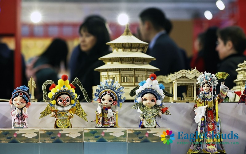 2024年5月1日,在法国巴黎国际博览会上,人们在“遇鉴中国”中华文化主题展上参观。新华社记者 高静 摄