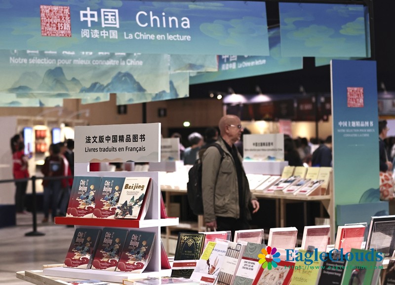 这是2024年4月12日在法国巴黎临时大皇宫举行的2024巴黎书展上拍摄的中国图书展区一角。新华社记者 高静 摄