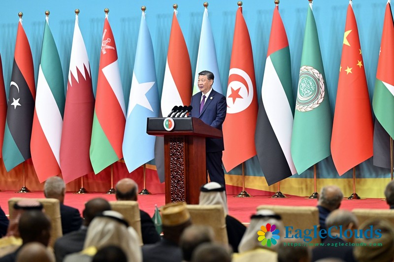 在热烈的掌声中,习近平发表题为《深化合作、继往开来,推动中阿命运共同体建设跑出加速度》的主旨讲话。