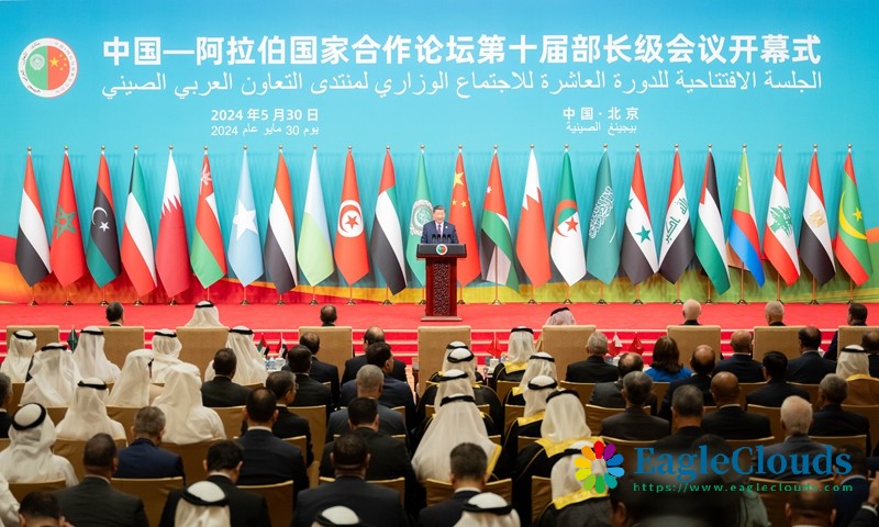 5月30日上午,国家主席习近平在北京钓鱼台国宾馆出席中阿合作论坛第十届部长级会议开幕式并发表主旨讲话。新华社记者 殷博古 摄