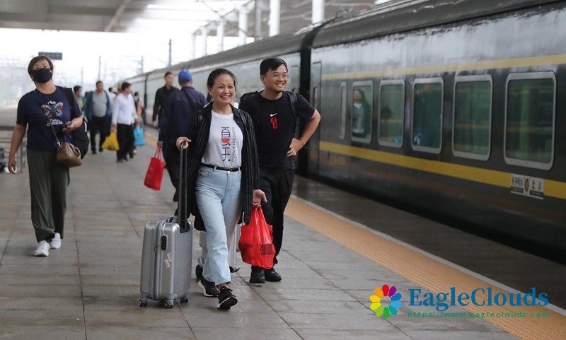 6月14日,旅客在河北秦皇岛火车站准备乘坐火车。