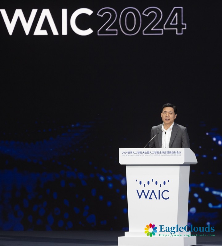 7月4日,百度创始人、董事长兼首席执行官李彦宏在2024世界人工智能大会产业发展主论坛上发表演讲。