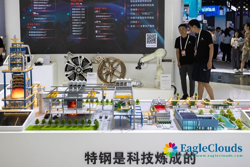 7月4日在2024世界人工智能大会上中信集团展位拍摄的智能工厂模型。