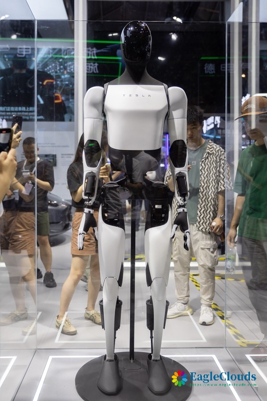 7月4日在2024世界人工智能大会特斯拉展位拍摄的人形机器人。