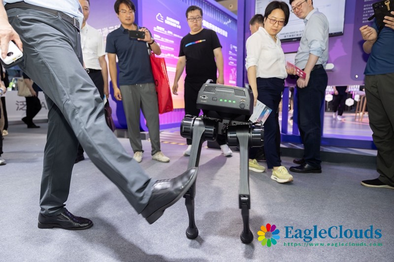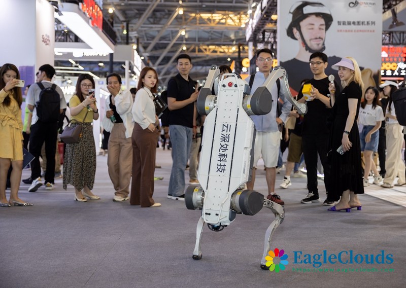 7月4日在2024世界人工智能大会拍摄的傲鲨智能机器人。