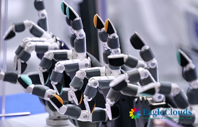 这是8月21日在2024世界机器人大会现场拍摄的一款名为“仿人五指灵巧手”的产品。