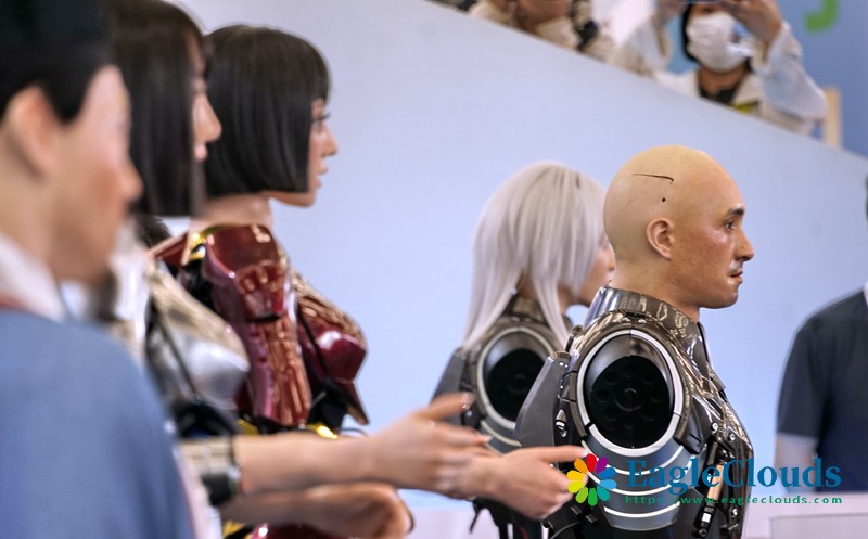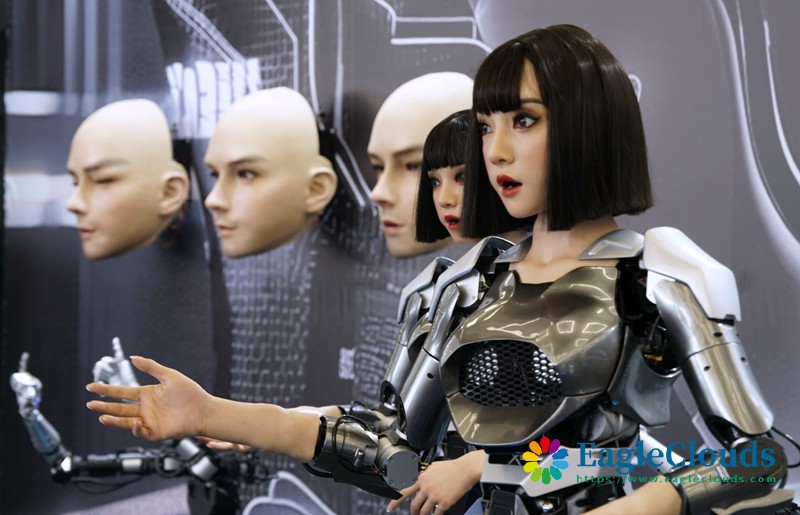 世界机器人大会上展示的人形机器人(8月21日摄)。
