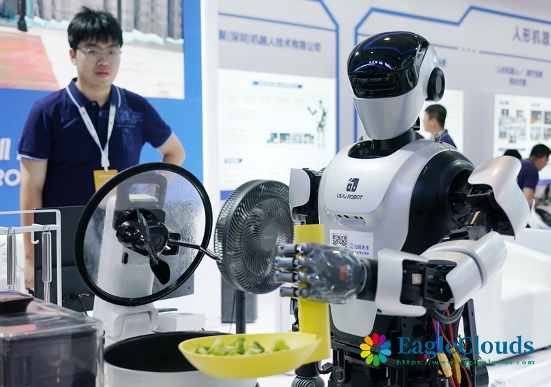8月21日,一款人形机器人在2024世界机器人大会展示炒菜。