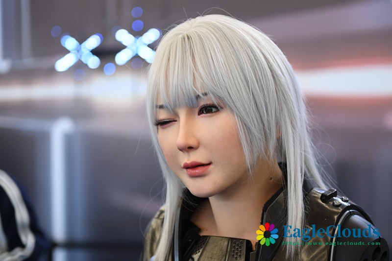 8月21日,2024世界机器人大会现场的一款多模态情感交互机器人向观众“眨眼”。