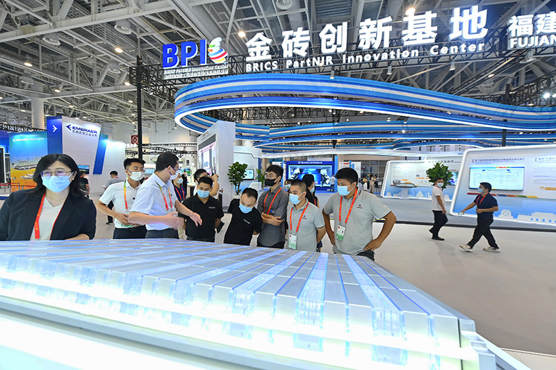 9月8日,参观者在第二十二届投洽会宁德时代展位观看该公司的展品。