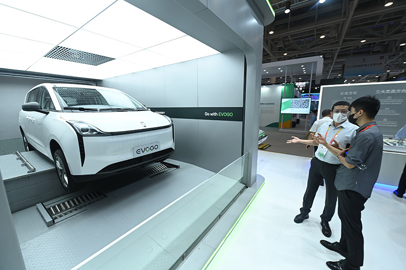 9月8日,参观者在第二十二届投洽会宁德时代展位,参观新能源汽车换电过程。