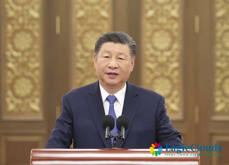9月23日,党和国家领导人习近平、李强、赵乐际、王沪宁、蔡奇、丁薛祥、李希等在人民大会堂接见探月工程嫦娥六号任务参研参试人员代表并参观月球样品和探月工程成果展览。这是习近平发表重要讲话。新华社记者 鞠鹏 摄