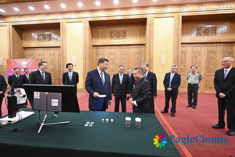 9月23日,党和国家领导人习近平、李强、赵乐际、王沪宁、蔡奇、丁薛祥、李希等在人民大会堂接见探月工程嫦娥六号任务参研参试人员代表并参观月球样品和探月工程成果展览。这是习近平等接见探月工程嫦娥六号任务参研参试人员代表。新华社记者 姚大伟 摄