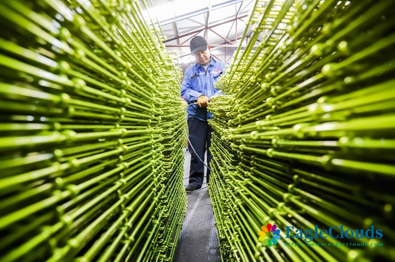 12月12日,工人在河北省遵化市东新庄镇一家出口宠物笼具生产企业车间工作。