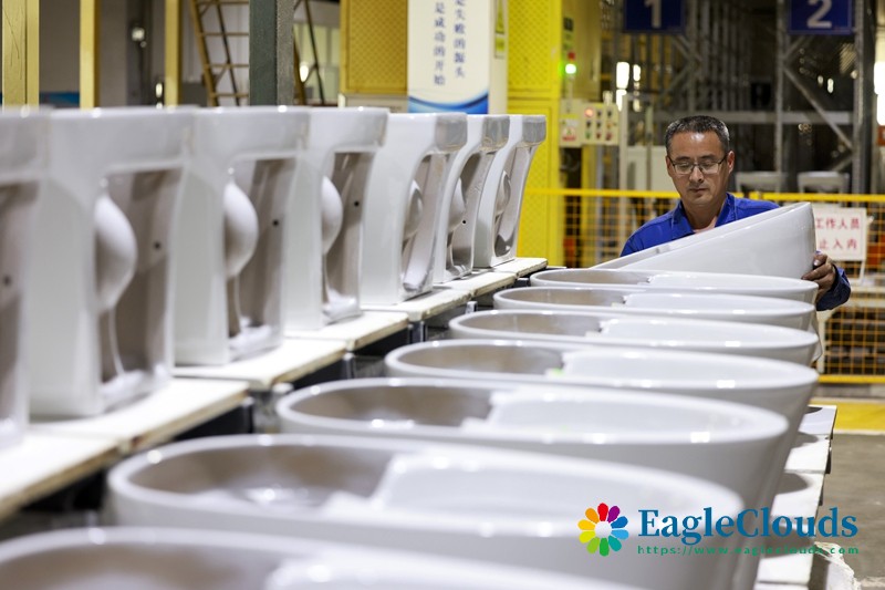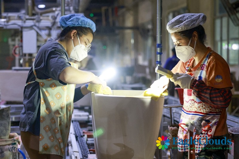 12月12日,河北省唐山市丰南区一家卫浴生产企业的工人在生产车间工作。