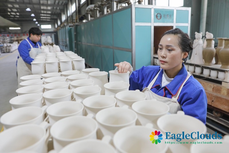 12月12日,河南省平顶山市宝丰县汝窑陶瓷产业园内一家汝瓷企业的工人在装窑。