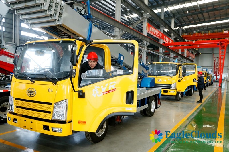 12月12日,青岛九合重工机械有限公司的员工在调试出口到海外市场的特种车。