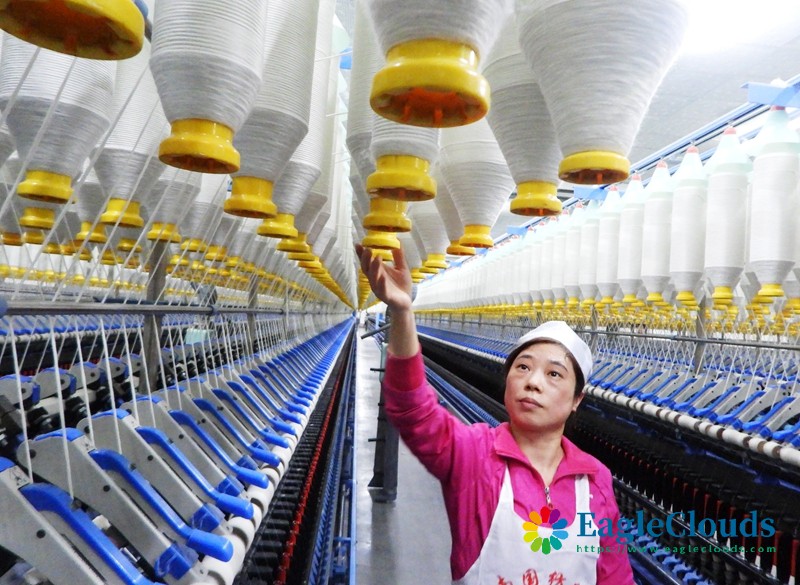 12月12日,在四川省达州市高新区南国纺织印染有限公司生产车间,工人在加紧赶制出口的棉布订单。