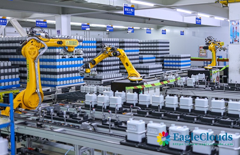 12月12日,在山东省荣成市一家燃气计量仪表制造企业的智能化生产车间内,智能机器人在进行生产作业。