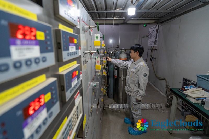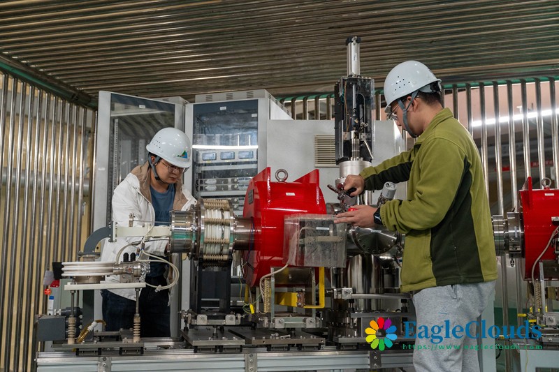12月11日,锦屏大设施C1厅内运维人员在进行科研设备日常巡检。