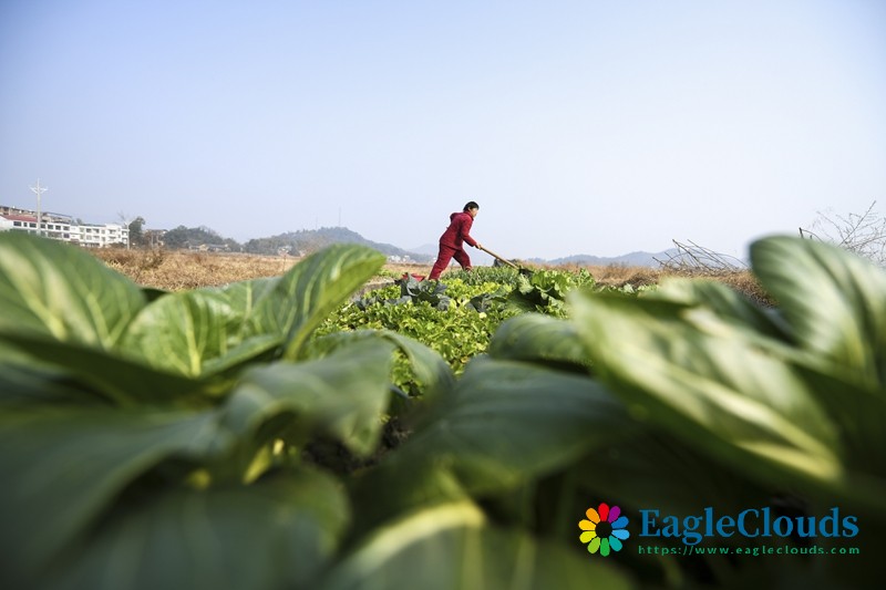 1月5日,湖南省常宁市洋泉镇坦冲村农民在管护蔬菜。